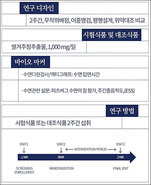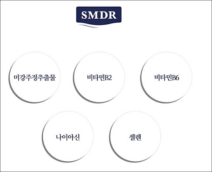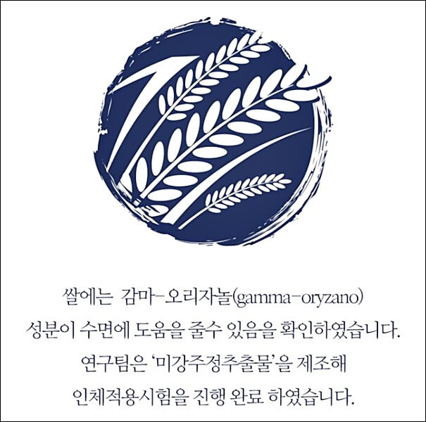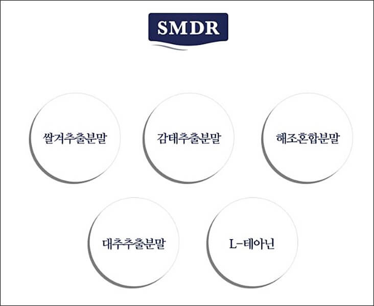 SMDR 수면영양제의 핵심 성분은 미강 주정추출물입니다. 미강 주정추출물은 쌀겨 주정추출물로, 쌀에 있는 감마-오리자놀 성분에 수면에 도움이 줄 수 있는 것으로 확인됐습니다. 또한 인체 실험 결과 2주간 쌀겨주정추출물 섭취 시 수면 관련 지표가 유의미하게 개선되었다고 하네요.