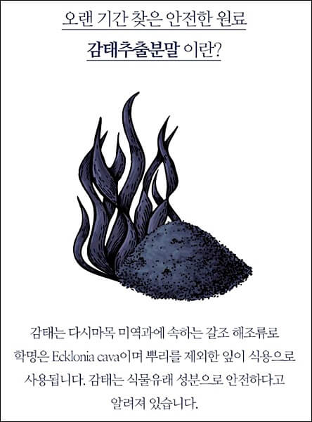 - 주요 성분: 쌀겨추출분말, 감태추출분말, 분말유당, 해조혼합분말, 산화마그네슘