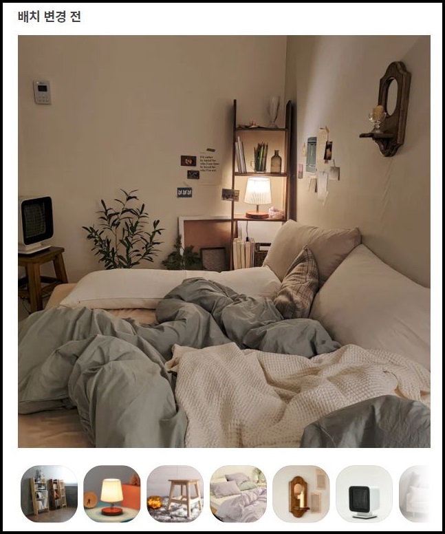 앞서 언급드린 것처럼 자가가 아닌 원룸 또는 오피스텔에 너무 큰돈을 쓰긴 아깝잖아요? 셀프 인테리어로 소품을 구매하셔서 분위기를 바꾸면 집콕하고 싶은 나만의 공간이 생깁니다!