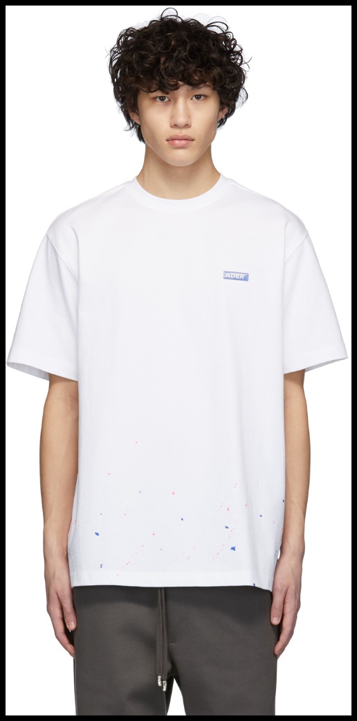 대한민국의 패션계를 이끌어나가고 있는 브랜드 중 하나인 아더 에러에서 나온 신상입니다. 프린트를 흩뿌려놓은 것 같은 그래픽, 그리고 왼쪽 가슴 부분의 ADER 로고가 특징입니다.