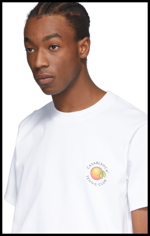 LVMH 프라이즈 수상자이기도 한 카사 블랑카. 지금 가장 눈여겨봐야 할 디자이너이기도 한 카사 블랑카의 테니스 클럽 로고 티셔츠입니다. 오렌지가 귀여운 포인트.
