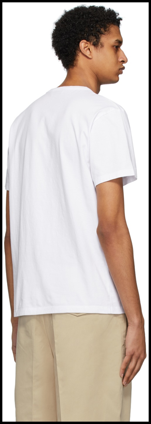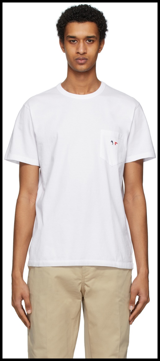 왼쪽 가슴에 조그마한 포켓 위에 수놓아진 메종 키츠네 3색 여우 로고가 특징입니다. 깔끔한 정 사이즈의 티셔츠기 때문에 크게 입거나 작게 입지 말고 기본 사이즈 그대로 가시길 추천합니다.