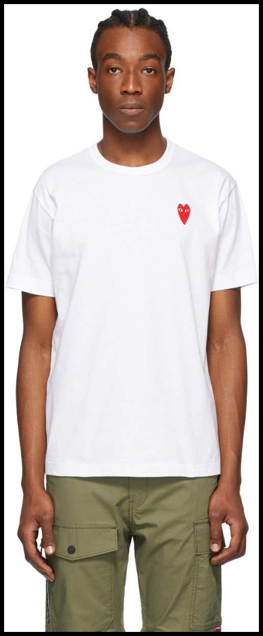 컨버스 x 꼼데가르송 플레이 척 70만 있다면? 꼼데가르송 플레이에서 나온 깔끔한 하트 로고의 티셔츠는 어떠세요? 빨간색 하트 로고가 포인트로 제격일듯합니다.