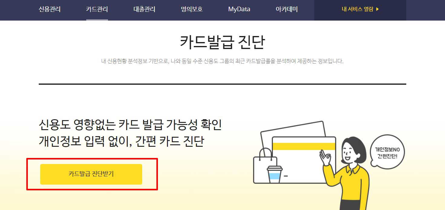 신용도 영향없는 카드 발급 가능성 확인하는 카드발급 진단받기 클릭