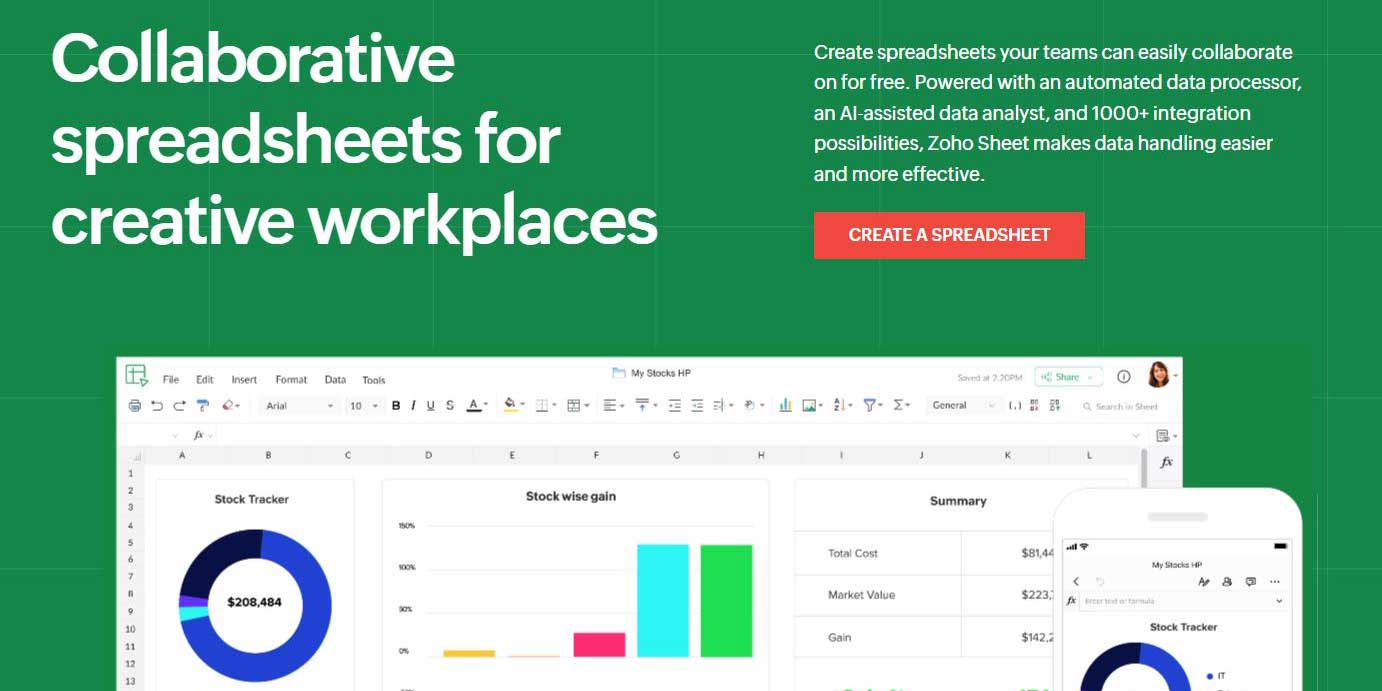 클라우드 기반의 스프레드 시트 어플리케이션 Zoho Sheet를 마지막 대안으로 추천드립니다. 엑셀과 유사한 방식으로, xlsx, xls, csv 등의 엑셀 파일을 호환하며 클라우드 기반이기에 공유가 자유롭다는 장점이 있습니다.